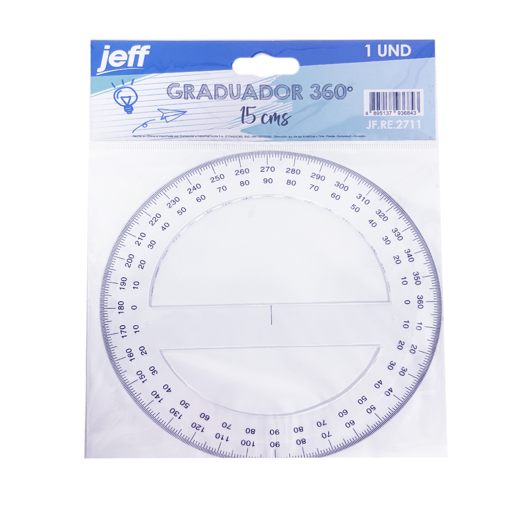 InicioÚTILES ESCOLARESReglas Graduador Jeff 360° – 15cm